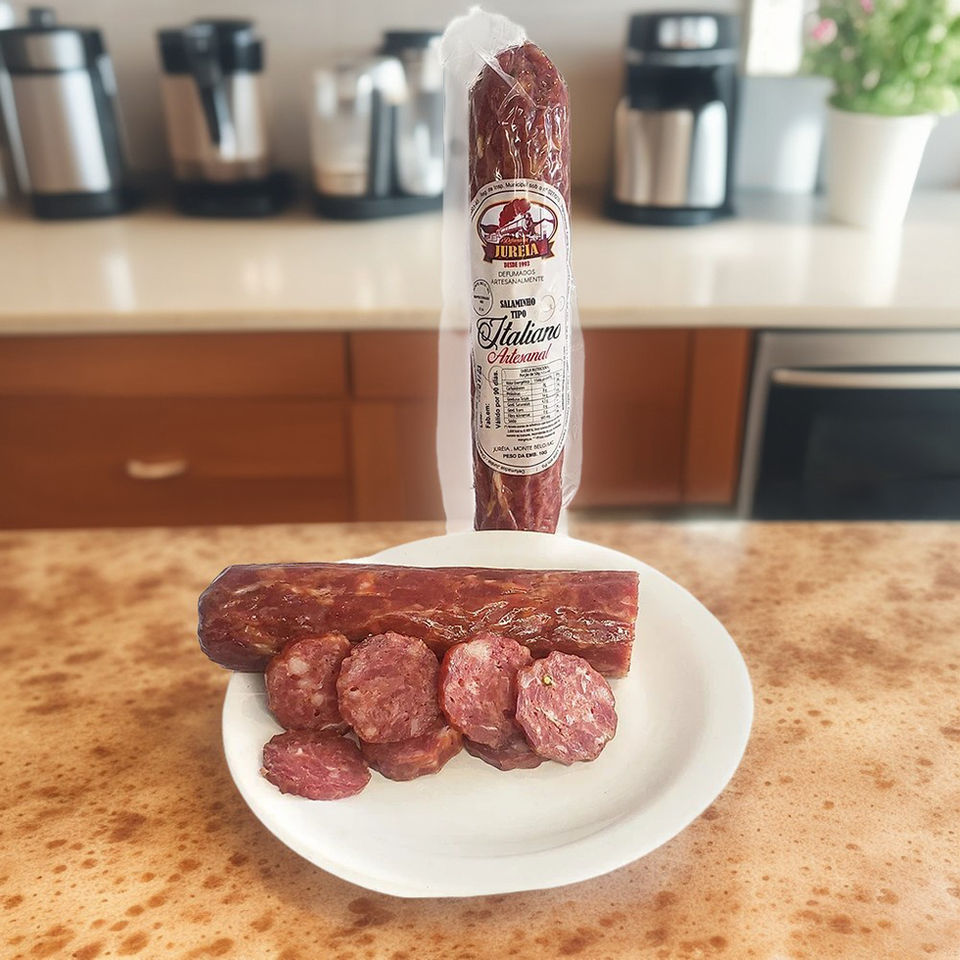 Feito artesanalmente no Sul de Minas, o Salaminho Italiano traz o sabor tradicional e único, com um toque especial de especiarias. Ideal para compor tábuas de frios, petiscos ou para ser saboreado sozinho, ele é a escolha perfeita para quem aprecia produtos de alta qualidade e autenticidade. Cada fatia é um convite ao sabor irresistível da charcutaria artesanal.